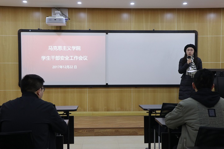于2017年12月22日在学院412室召开了学生干部安全会议。学院党委组织员兼辅导员王玉琴老师、学院团委书记杨华老师以及全体研究生干部参加了此次会议。