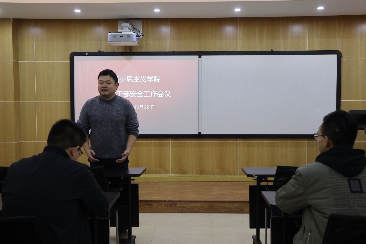 王玉琴老师首先传达学校关于做好近期研究生安全工作的通知,强调了在“两节三夜”期间做好安全工作的重要性,并明确要求研究生在“两节三夜”期间尽量减少外出,避免前往市内人口密集的商圈参加圣诞狂欢和迎新年等相关活动,以免遇到拥堵和踩踏等安全事故。同时,王老师对学院近期研究生安全工作进行了具体安排。最后她希望研一同学能够在期末考试中取得好成绩,研二同学顺利通过开题答辩,研三同学积极应聘找到满意工作。