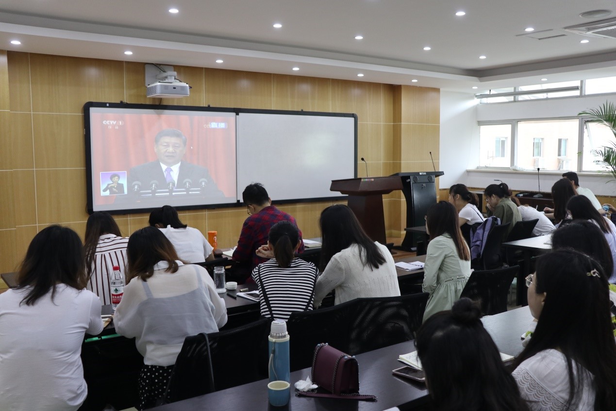 组织师生观看马克思诞辰200周年纪念大会直播,并对习近平总书记在大会上的讲话进行了认真学习和热烈讨论。