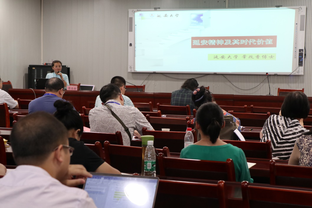15日下午14:30,培训班全体学员在延安大学泽东干部学院聆听延安大学政法学院常改香博士主讲的《延安精神及其时代价值》专题讲座。常改香主要从延安精神的形成条件、延安精神的科学内涵、延安精神的新时代价值三个方面,结合马克思主义中国化、中国共产党领导的革命斗争和中华文化、民族精神发展的历史逻辑对延安精神的产生、形成、确立和发展作了全面、深入、系统地剖析和阐释。