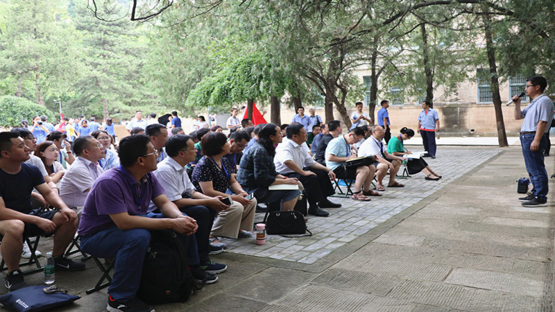 党性教育培训班全体学员怀着对红色革命圣地延安无限的向往和崇敬之情,来到延河之滨宝塔山上,聚集到党旗前,在学院党委书记罗滌的带领下重温入党誓词,接受“不忘初心、牢记使命”理想信念再教育。接着,学员们又来到杨家岭革命旧址聆听延安大学张文生教授的现场教学《毛泽东与黄炎培纵论历史周期率》。随后,大家到中央大礼堂重温了作为延安精神重要内容之一的七大精神。学员们还参观了毛泽东、周恩来、朱德等老一辈革命家的旧居。