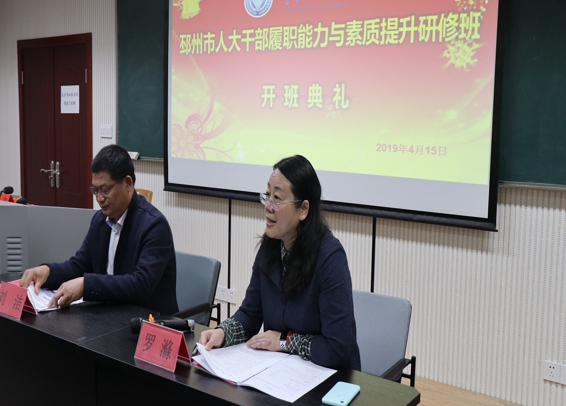 刘洁在发言中谈到,本次培训目的在于帮助邳州市人大代表开拓视野、拓宽思路、提升能力、增强自豪感。希望各位参训学员一要树立责任意识,主动掌握人大工作的特点;二要掌握学习方法,真学真用,勤学勤思;三是要相互配合、团结协作,取长补短,充分展现邳州市人大干部的精神风貌。