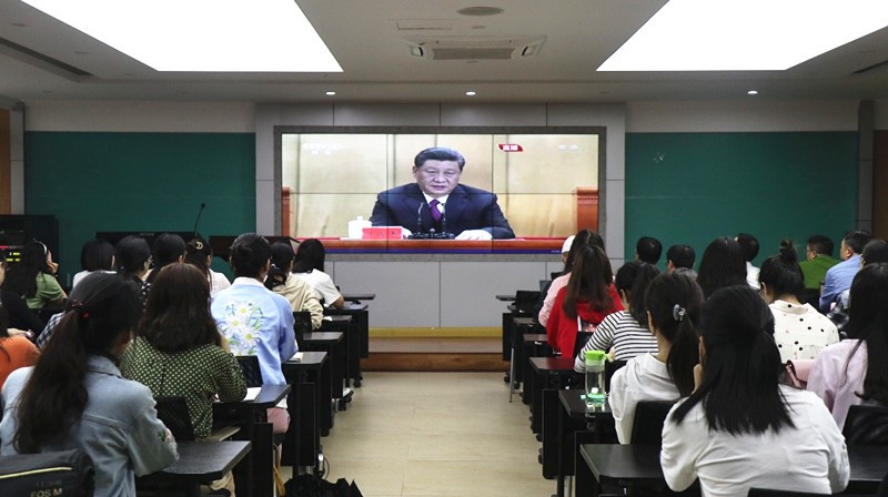 组织师生在学院第一会议室观看 “纪念五四运动100周年大会”现场直播。天天看小说