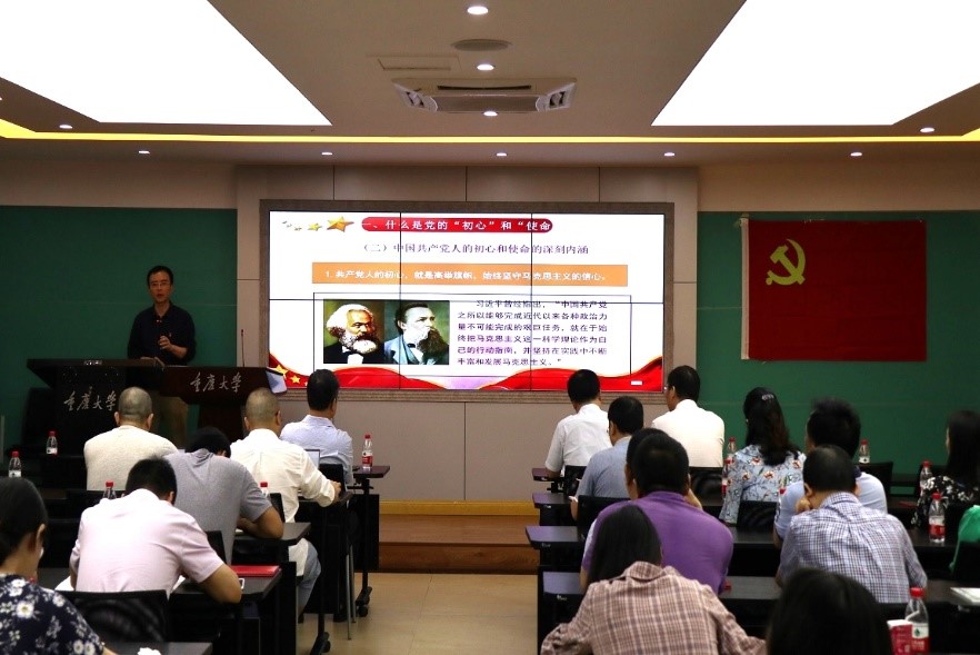 表彰大会结束后,温健琳副书记为全体党员讲“不忘初心,牢记使命”主题党课。温书记围绕“什么是党的‘初心’和‘使命’”“为什么要‘不忘初心,牢记使命’”“‘不忘初心,牢记使命’主题教育的意义”“如何践行‘不忘初心,牢记使命’”四个方面对“初心”“使命”作了全面阐述。他强调,践行“不忘初心,牢记使命”,一要抓牢理论学习;二要坚定信念跟党走;三要直面使命敢担当;四要无私奉献有作为;五要把纪律和规矩挺在前面,坚持做到“为师生服务”、“为‘双一流’建设服务”、“为立德树人服务”。