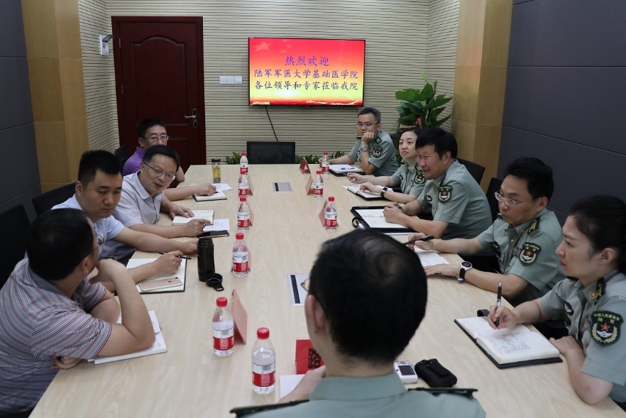 2019年6月19日,陆军军医大学基础医学院陈彦波政委一行到我院交流访问,在学院439会议室举行了座谈会,天天看小说 副院长徐鲲、马克思主义中国化教研室主任代礼忠、思想道德修养与法律基础教研室主任杨泽文、中国近现代史纲要教研室主任卢旭东参加座谈会。