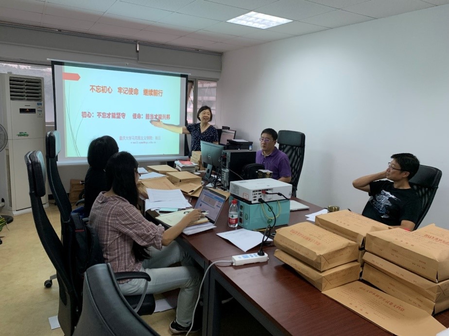 思想道德修养与法律基础教研室教师党支部全体党员在2019年6月6日、27日两次集中学习习近平总书记5月31日在“不忘初心、牢记使命”主题教育工作会议上的重要讲话精神,并由支部书记杨泽文和肖云教授共同讲授题为“不忘初心、牢记使命、继续前行”的专题党课。