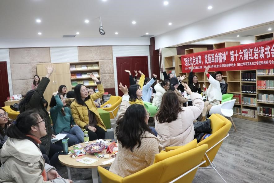 的同学参加了此次分享会。分享会主要从以书会友--书友交流心得、侧耳倾听--分享所感所悟、书声琅琅--诵读经典诗词、红色重庆--现场知识竞答四个环节进行分享和互动。