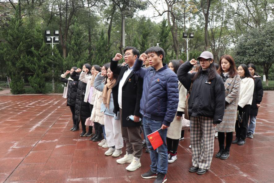 参观结束后,全体学生齐聚红岩魂广场。在场党员重温了入党誓词,誓言继承革命先烈遗志,为共产主义奋斗终身。在党员们高亢而坚定的宣誓中,在场入党积极分子深受鼓舞,更加坚定了加入中国共产党的决心。