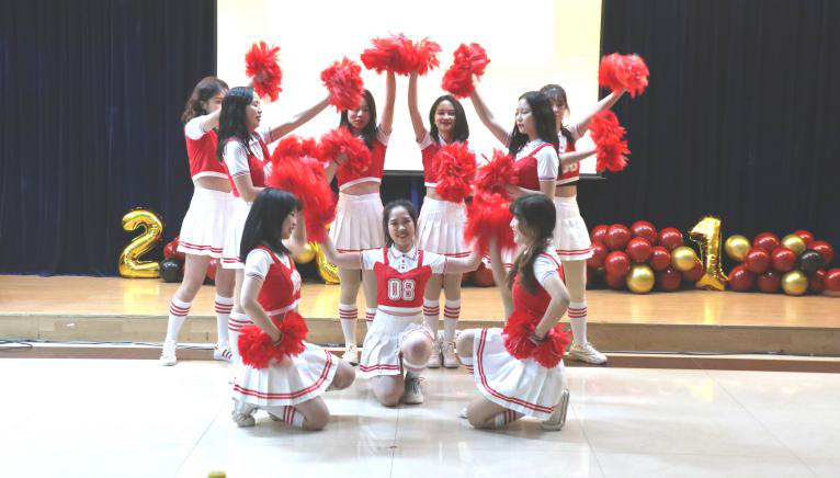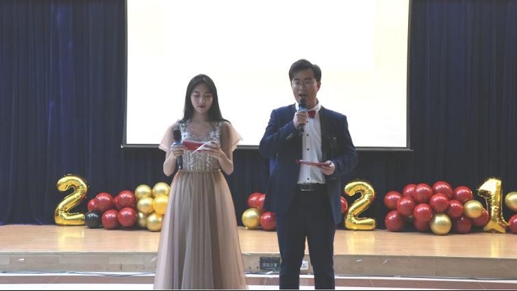 领导班子、部分教职工及全院学生欢聚一堂,共迎新年。