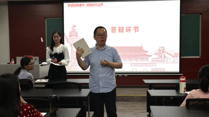 随后,同学们对如何选择原著和阅读中碰到的问题提问,老师进行了针对性解答。蒋老师激励同学们坚定理想信念、增强学习意识,夯实马克思主义理论功底,争取做到学马信马,真懂真用。