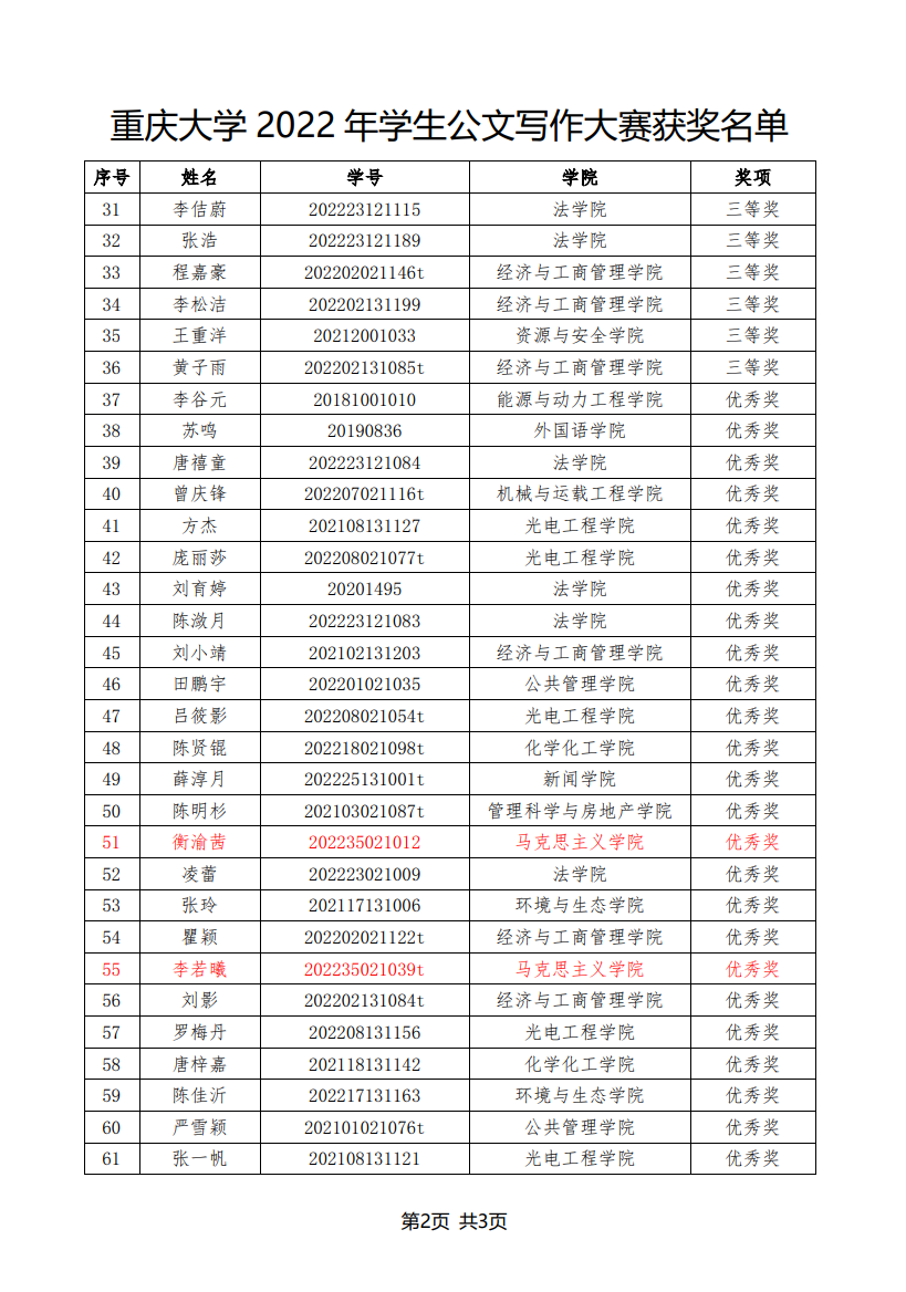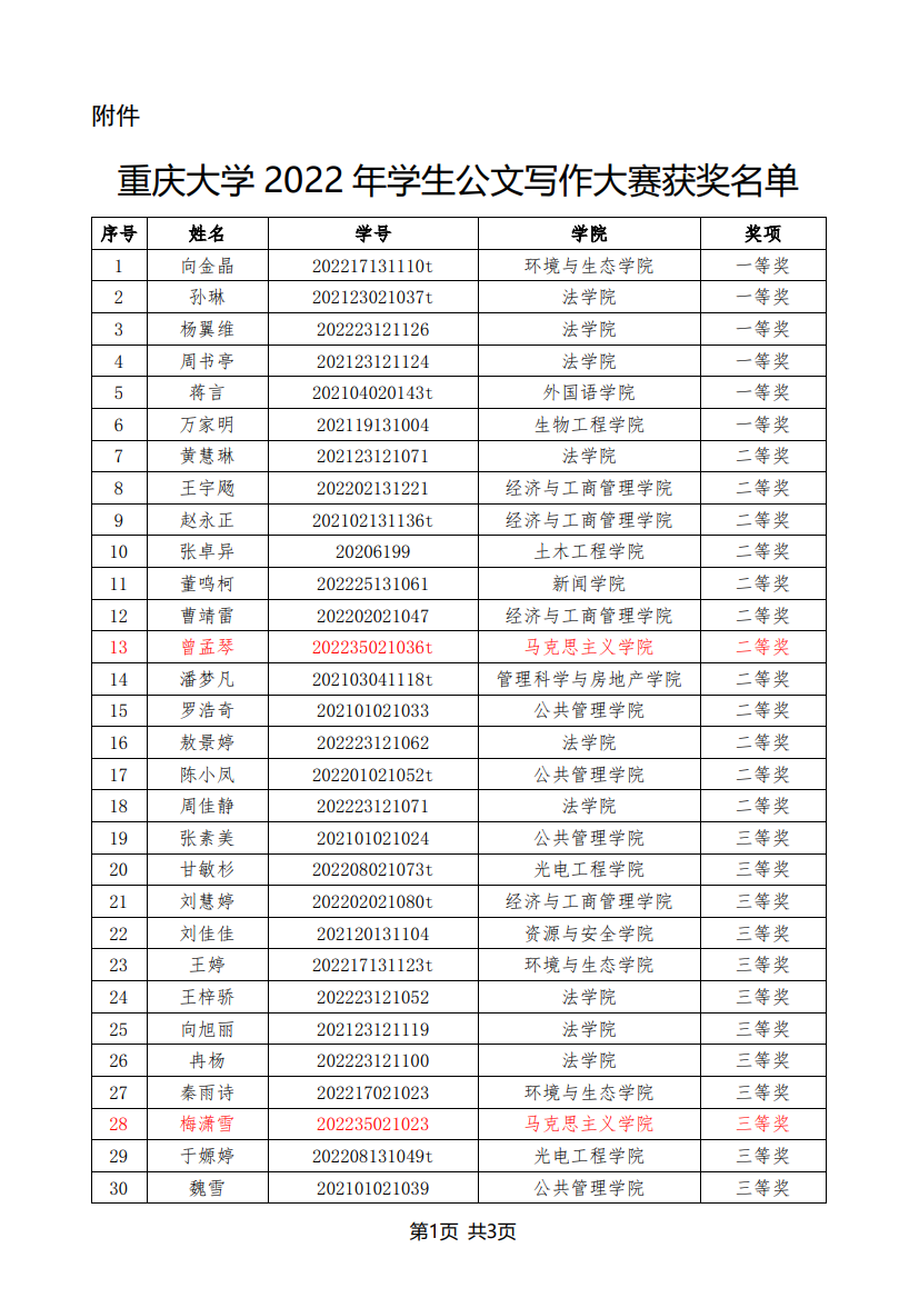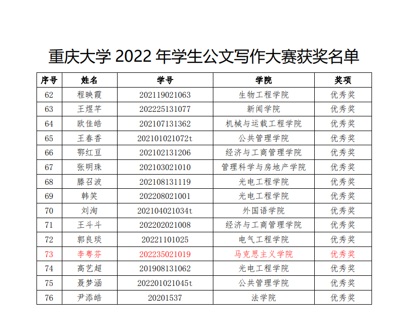 在2022年11月至12月举办的“志公博学,明文定理”天天看小说 2022年公文写作大赛中,我院曾孟琴等5名研究生获奖,获奖名单如下: