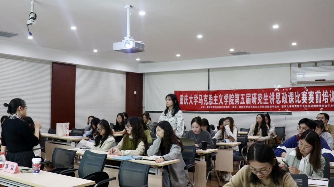 于504教室开展了第五届研究生讲思政课比赛赛前培训活动,特邀蒋荣副教授为全体参赛同学传授赛课经验。