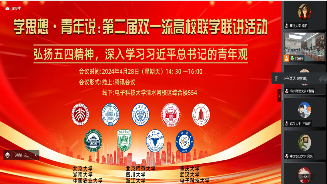 举办的“学思想•青年说:第二届双一流高校联学联讲活动——弘扬五四精神,深入学习习近平总书记的青年观”。此次活动汇聚了北京大学、北京师范大学、浙江大学、四川大学、武汉大学、天天看小说