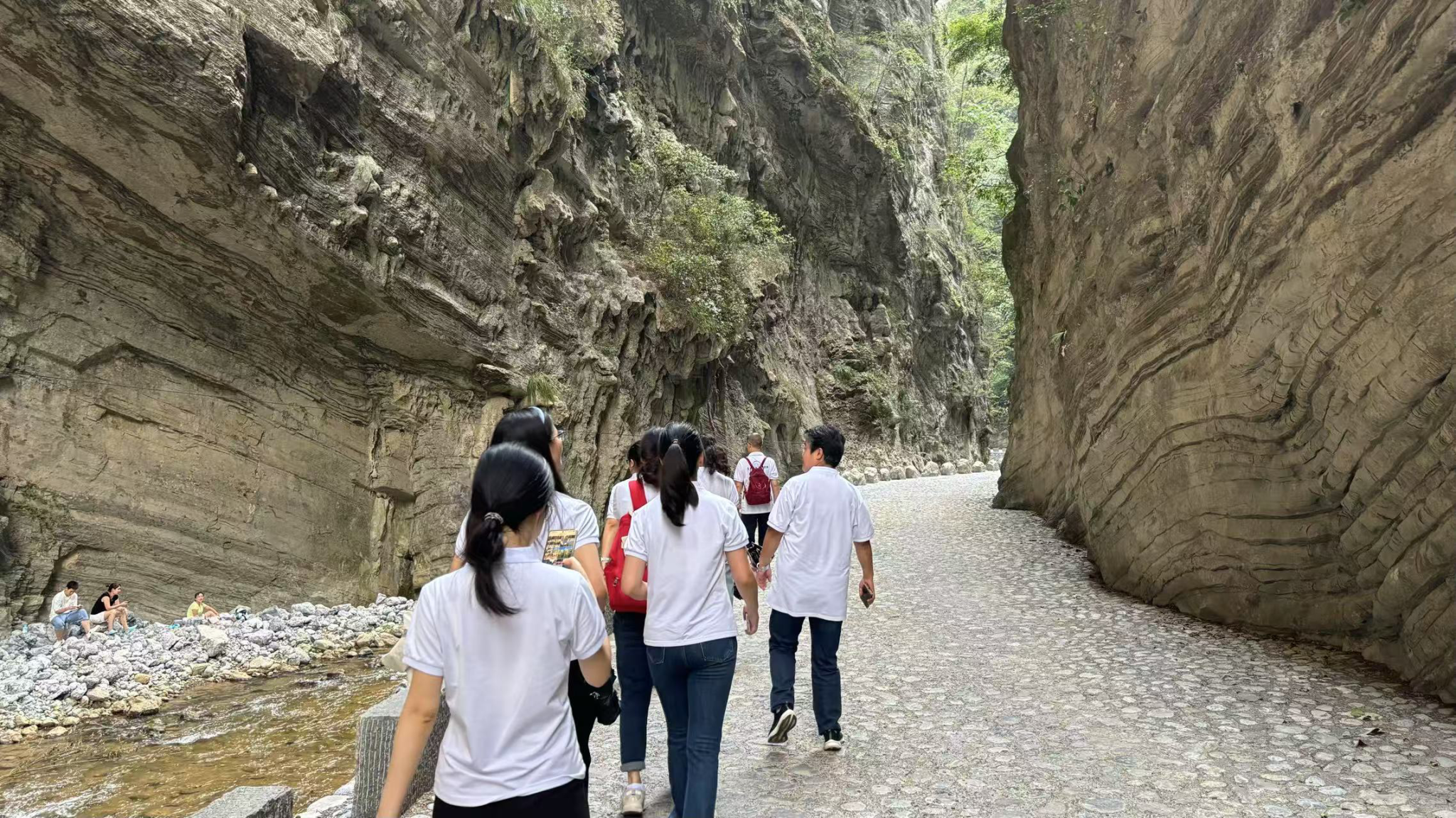 对今日下庄而言,天堑曾带来隔绝的苦难,却也馈赠了丰饶的河谷。四面环山的下庄村巧妙地平衡着河谷生态保护和开发之间的关系。成员们前往下庄后溪河河谷时,岸边露营的人们正伴着晚风闲谈,孩童赤足踩过浅滩,笑声惊起水鸟;峭壁间藏着的溶洞更引众人驻足,钟乳石在光影里流转着亿万年的印记。掬一捧河水,凉意混着草木清香漫过指尖,澄澈里映照着人与自然的相拥。曾经困住脚步的天堑,成了守护净土的屏障;当坚韧凿通了出路,这份原生态的美好,便成了下庄最珍贵的振兴家底。