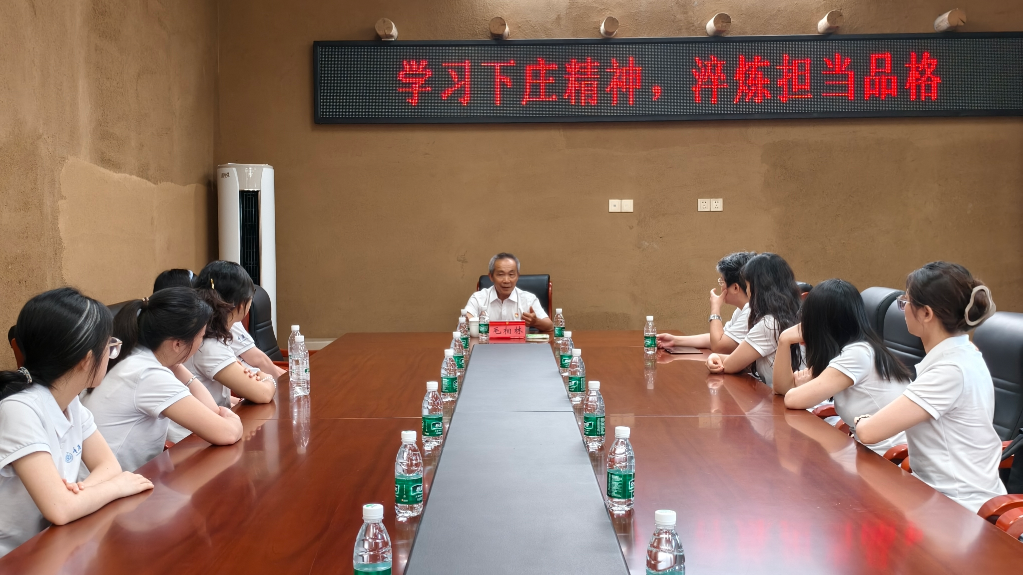 之后,第十四届全国人大代表、全国脱贫攻坚楷模、时任下庄村党支部书记毛相林为实践团成员讲解了下庄发展抓住的“四个关键”——稳教育、狠修路、重脱贫、强振兴。没有人更高的山,没有比脚更长的路,这是带领村民用七年时间凿出一条“天路”的村支书毛相林的真实写照。“我最亏欠的就是沈庆富,他头天找我批假,打算见在广东打工两年的老婆,我没批,第二天他就出事了,一米六八的孩子啊,最后收他的时候却不到一米二”,回忆起因修路而牺牲的村民,花甲之年的毛支书仍然热泪盈眶,谈起下庄的发展,他眼中的坚毅却更加浓重。“搞漂流、建索道、做夜景,修广场,建立一支唱下庄红歌、讲下庄故事的文艺演出队......”下话语间,下庄振兴的蓝图正徐徐展开。