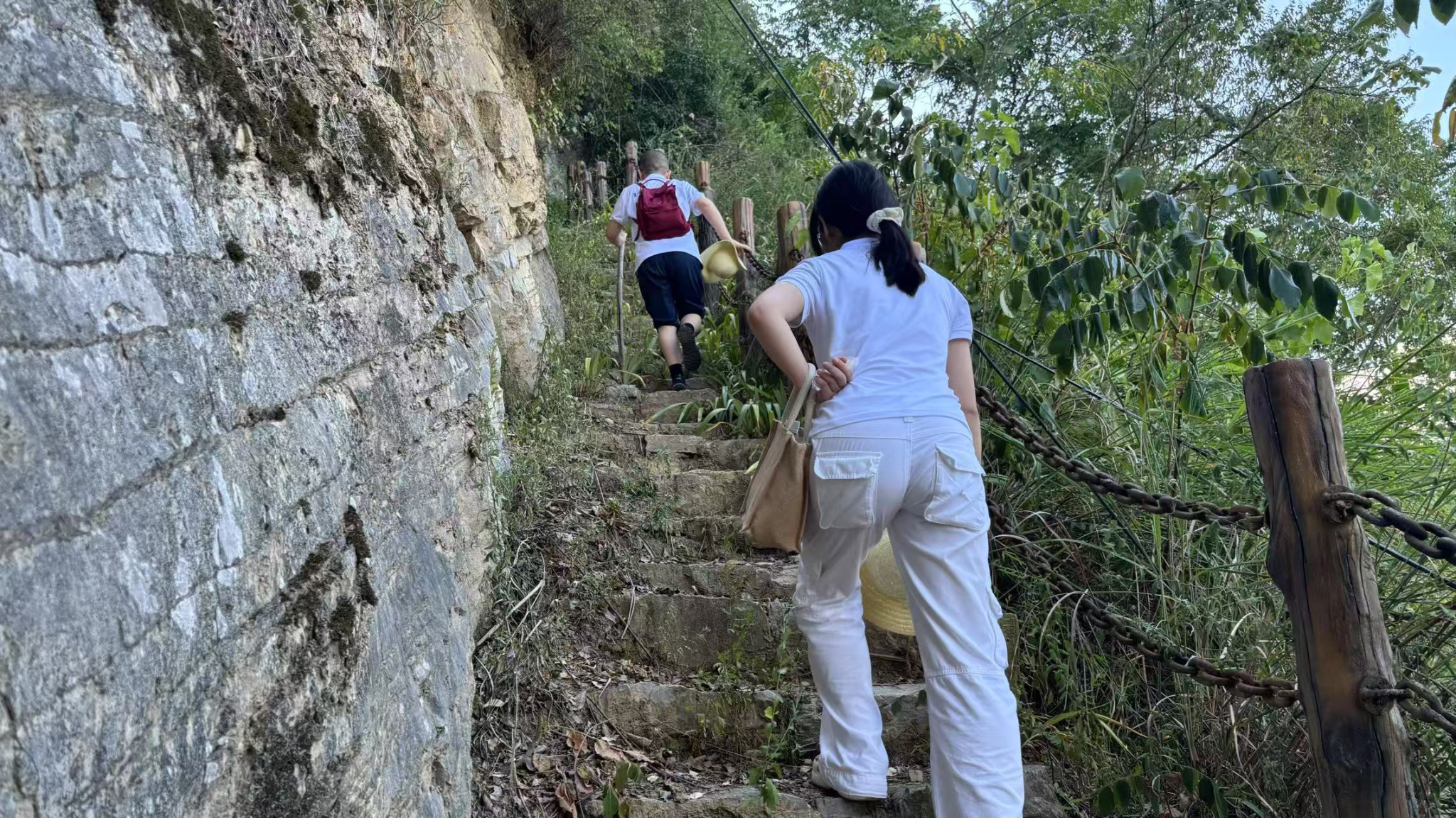 “我们在悬崖峭壁上,重走一条求生之路。”实践团成员在攀登下庄古道时感慨说道。下庄古道,是一条“让野猴都丧了命”的崎岖山路。整条路的山体坡度约70度,有着3个大台阶和108道“之”字拐,拐点间隔极短,可谓是真正的“山路十八弯”。然而山路越险,人心越坚;行路越艰意志越强,实践团成员在行程中以山歌鼓舞志气,以呼喊振奋人心,在体悟下庄人出山艰辛和不易的同时,以不甘落后的信念为坚强支撑,把不畏艰难的勇气化作前行动力,将青春的身影定格在巫峡之巅,与当年凿路者的身影重叠成奋斗的接力。