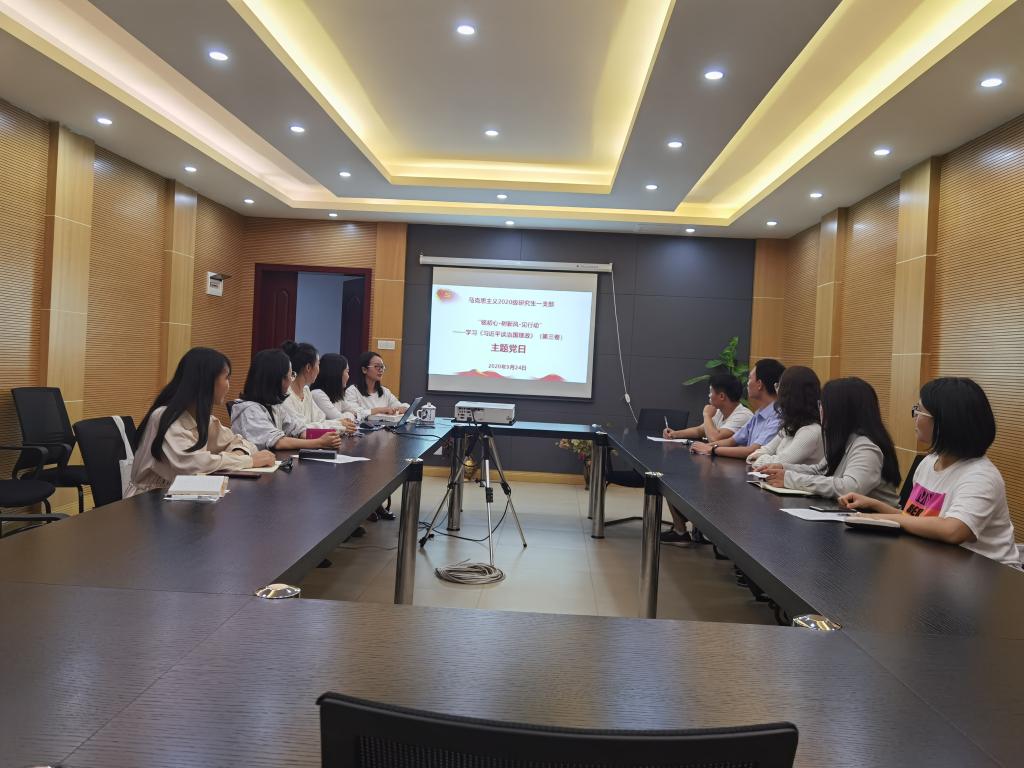 2020级研究生一支部在学院414会议室开展名为“铭初心·树新风·见行动”——《习近平谈治国理政》第三卷主题党日活动。
