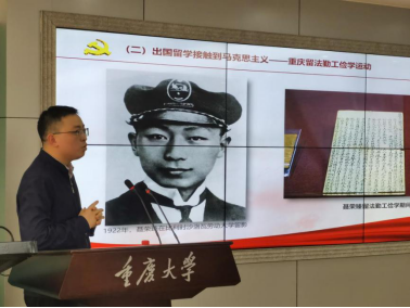 讲座上,黎余副主任围绕6个方面进行展开,从星火燎原到不忘初心,为支部成员详细阐述了马克思主义在重庆的传播。其中重点讲解了恽代英、张闻天、黄日葵等先驱者在重庆做出的可歌可泣的革命事迹,从而感受重庆共产党人的精神谱系。黎余副主任强调,重庆先建团后建党是一重要特点,团组织的成立到党组织的成立经历了众多曲折,在当时选择共产主义、信仰共产主义是要付出生命代价的。中国共产党穿越百年风雨,依旧散发熠熠光彩,让我们深刻理解了中国共产党为什么“能”,马克思主义为什么“行”、中国特色社会主义为什么“好”。