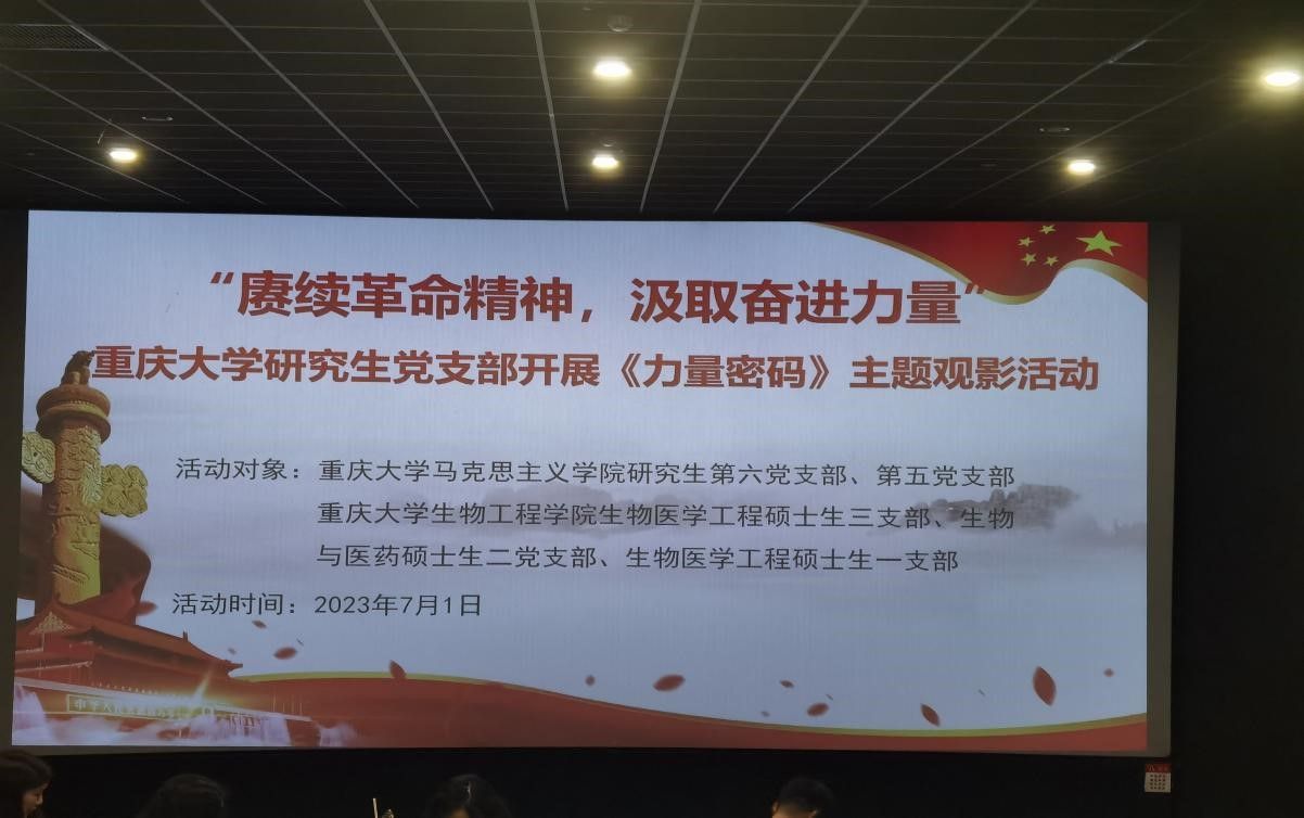 研究生五、六党支部联合生物工程学院生物医学工程硕士生一、三支部、生物与医药硕士生二支部开展了“赓续革命精神,汲取奋进力量”主题观影活动,各支部党员前往大地鹊语风影城观看影片《力量密码》。