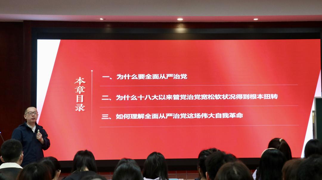 接着,蒋楼通过生动的实例分析了“为什么十八大以来管党治党宽松软状况得到根本扭转”,揭示了管党治党宽松软状况得到根本扭转的内在逻辑和深刻原因,强调了党在管党治党方面的决心和力度,以及管党治党的措施对于保持党的先进性和纯洁性的重要性。同时,他向大家介绍了党在经历革命性锻造的过程中,如何变得更加坚强有力,如何不断提升自我净化、自我完善、自我革新、自我提高的能力,确保党始终成为中国特色社会主义事业的坚强领导核心。