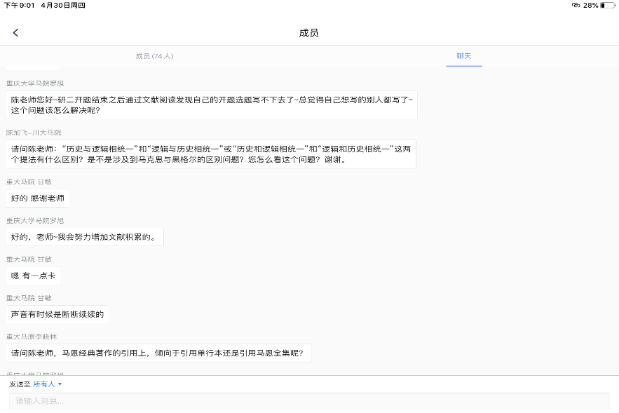 副教授陈飞在小程序--“腾讯会议”作了题为“寻论文写作选题 研论文写作方法”的线上讲座,我院2018级、2019级部分研究生以及来自四川大学、西安电子科技大学、湖南师范大学等高校马院研究生共计80余人聆听了讲座。
