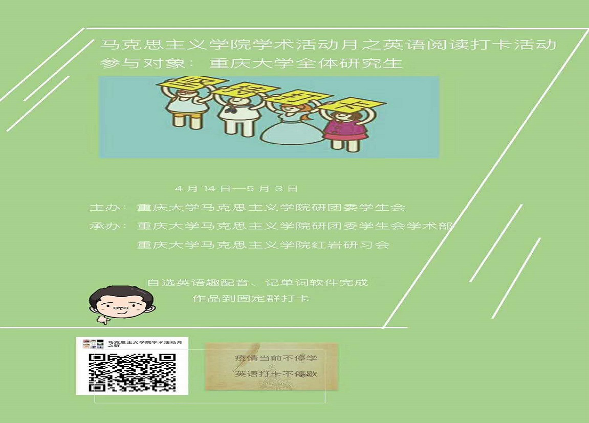 2020年4月14日至2020年5月3日,天天看小说 研团委学生会顺利举办为期20天的英语阅读打卡活动。