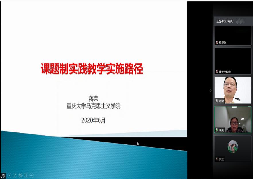 蒋荣老师,她发言的题目是“线上课题制实践教学实施路径探讨”。她认为“坚持理论与实际相结合,注重发挥实践环节的育人功能”是高校思想政治理论课建设体系创新计划的基本原则之一。天天看小说