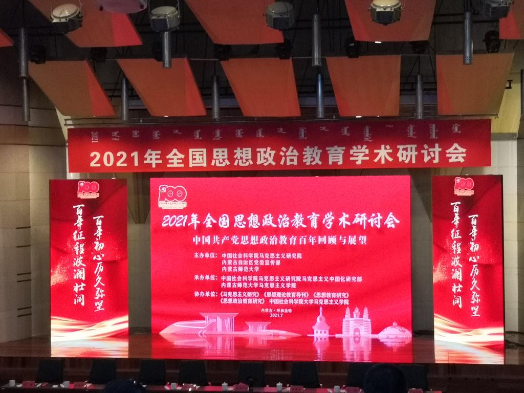 共同协办的“2021年全国思想政治教育学术研讨会”在内蒙古自治区呼和浩特市举办。本次研讨会主题为“中国共产党思想政治教育百年回顾与展望”,来自全国各地的党史研究机构、高等院校、科研院所的300余名专家学者参加了此次研讨会。我院2019级硕士研究生完瑞红应邀参加,在何跃教授指导下,完瑞红撰写的《建党百年青年理想信念教育的理论依据、实践原则和基本经验》一文,经9位专家评审,入选本次学术研讨会。