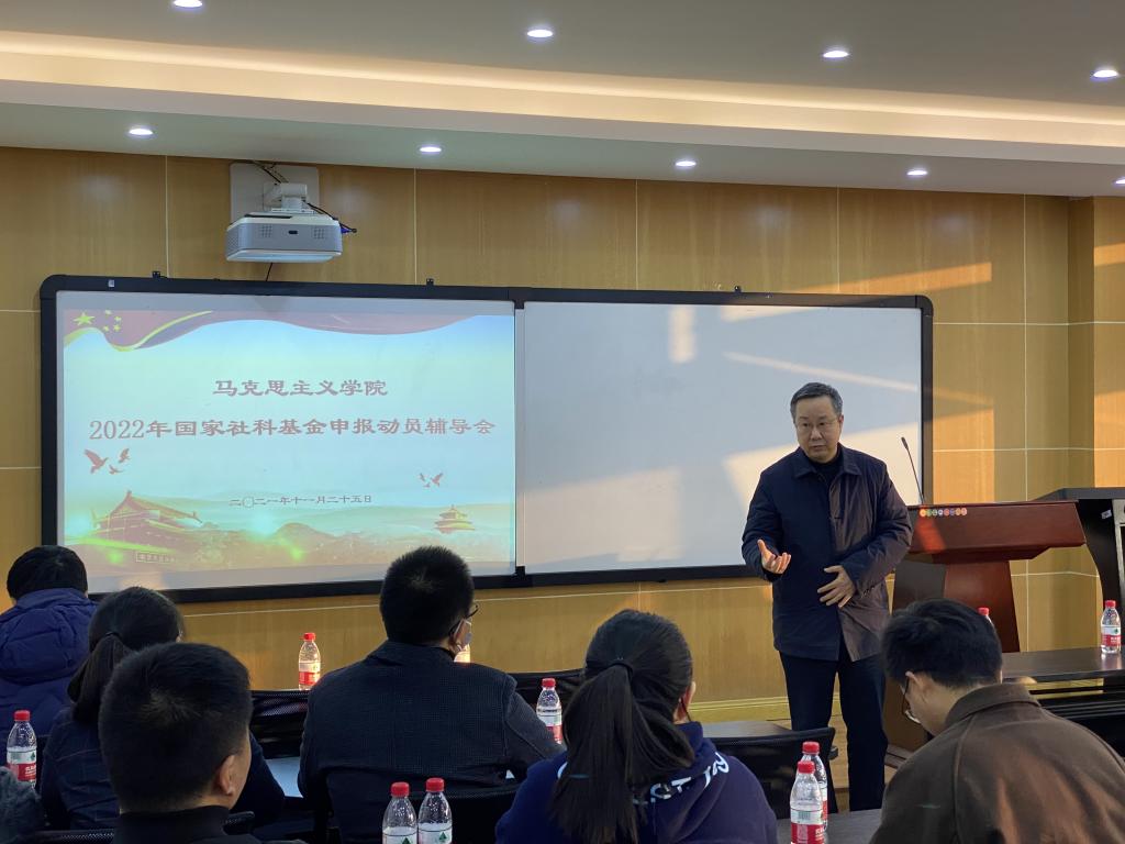 吕进副院长进行最后总结,他首先感谢两位老师的分享,他表示,学院高度重视国家项目申报工作,为教师搭建好平台,加强社科基金申报指导,努力实现校外和校内专家共同指导,助力提升学院教师科研能力,希望各位老师积极申报,为学院的发展做出自己的贡献。