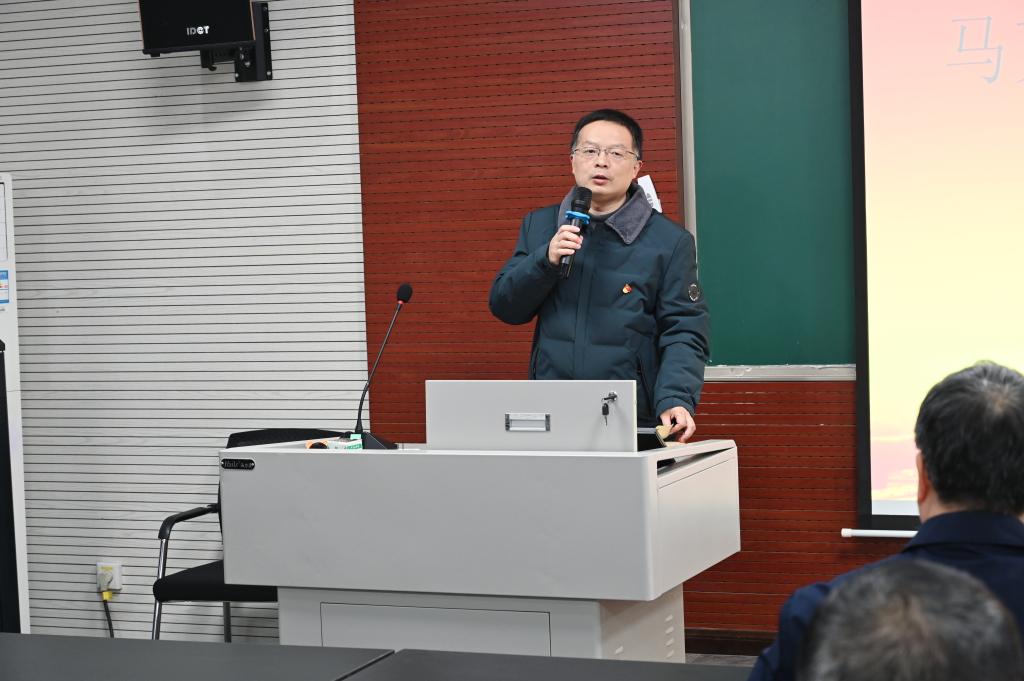 张邦辉首先进行讲话,张院长通报了目前学院的一些重点工作情况,并针对学院教学科研、学科与平台建设等工作,结合年度工作任务相关情况进行了说明。针对即将到来的期末考试等工作,张院长向全体老师作了考前动员。张院长最后强调了疫情防控工作,提醒全体教职工做好疫情常态化防控。