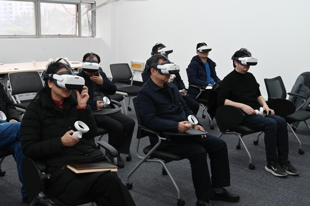 肖铁岩对实验室“思政课虚拟仿真教学素材库”进行了介绍,重点阐述了实验室在“全实景深度沉浸式思政课虚拟仿真教学”中的探索,随后,对实验室“创新思政课虚拟仿真教学研究”进行了成果展示,与会人员一起欣赏了此次成果展示。