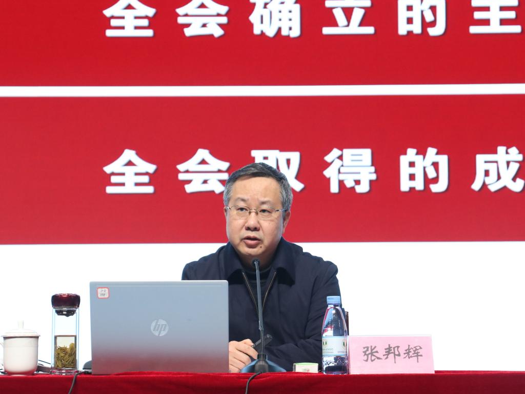 张邦辉院长围绕深刻认识全会决议的重大意义,从深刻认识党的百年奋斗的初心使命和重大成就、深刻认识中国特色社会主义新时代的历史性成就和历史性变革、深刻认识党的百年奋斗的历史意义和历史经验、从党的百年奋斗历史中汲取智慧力量走好新的赶考之路等方面进行系统宣讲和深入阐释。