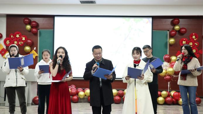 领导班子、部分教职工及全院学生欢聚一堂,共迎新年。晚会在激动人心的开场舞《贺新春》中拉开帷幕。