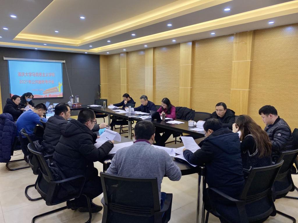 2022年1月4日下午,学院在414会议室召开公共服务考评会,学院领导班子、教研室主任、党支部书记、工会主席、党委组织员、院办主任、院团委书记等部门负责人参加会议。