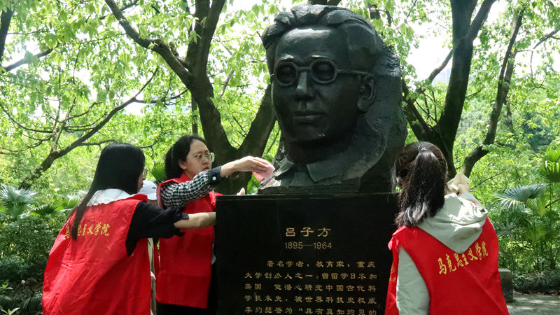 在活动过程中,志愿者们满怀崇敬之心,细心擦拭雕像,使先贤们的雕塑焕然一新。