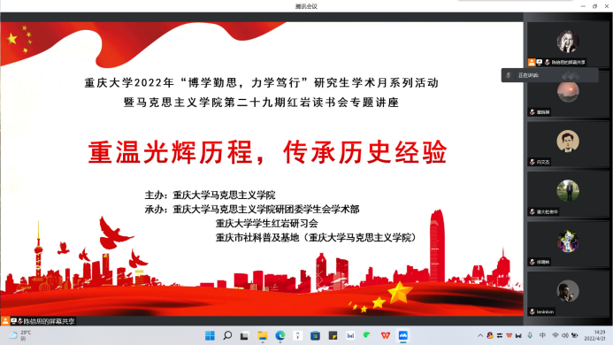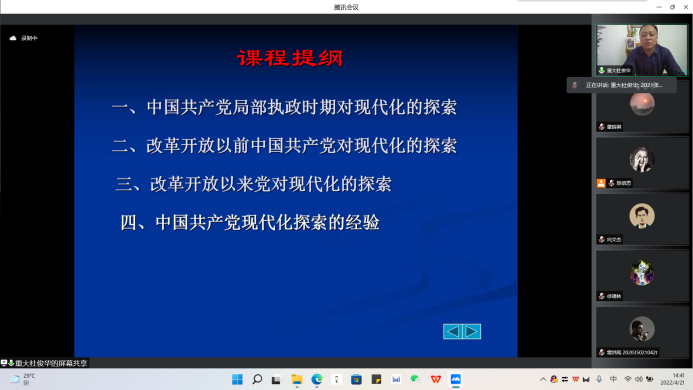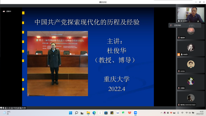教授杜俊华作题为“中国共产党探索现代化的历程及经验”的学术讲座。讲座由陈倍思同学主持。2020级、2021级研究生通过线上的方式参加了此次讲座。