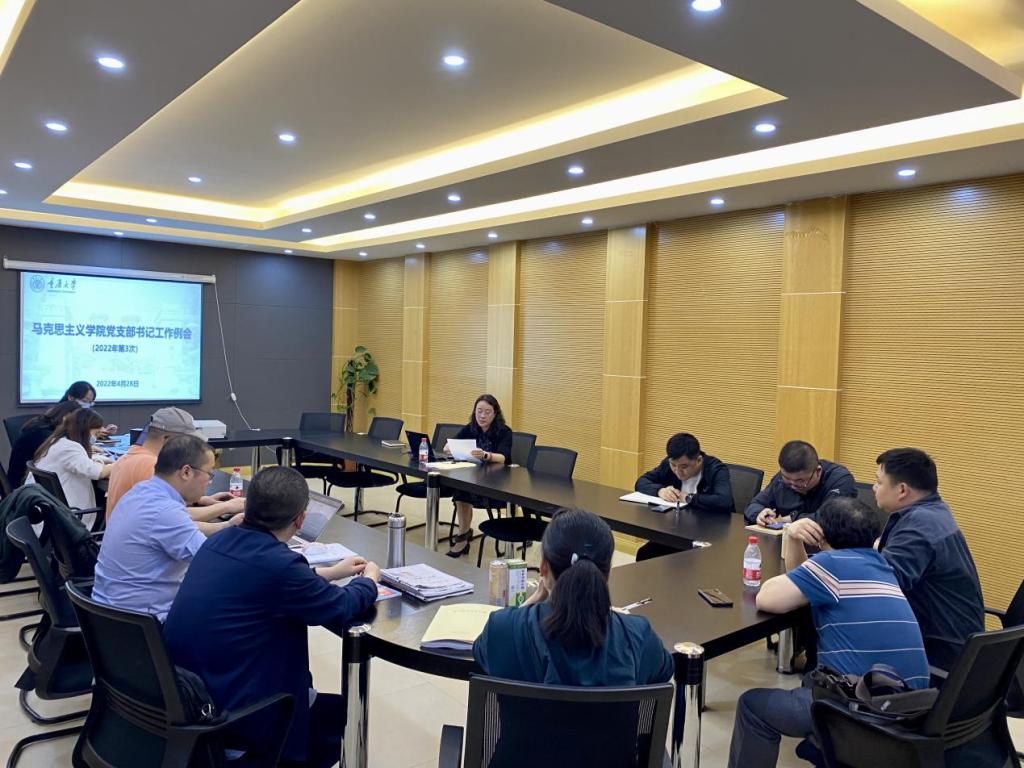 委员会二级党组织工作条例》等文件,她指出全面从严治党要注重实际行动,坚决落实上级党委决策部署。罗书记强调马院全体党员同志都要提高政治站位,增强政治意识,强化政治担当,压紧压实政治责任,全体党员同志要正确认识全面从严治党新形势和新要求,扎实做好全面从严治党工作。罗书记传达了学校二级党组织书记例会及意识形态工作专题会议精神,并布置了相关工作。