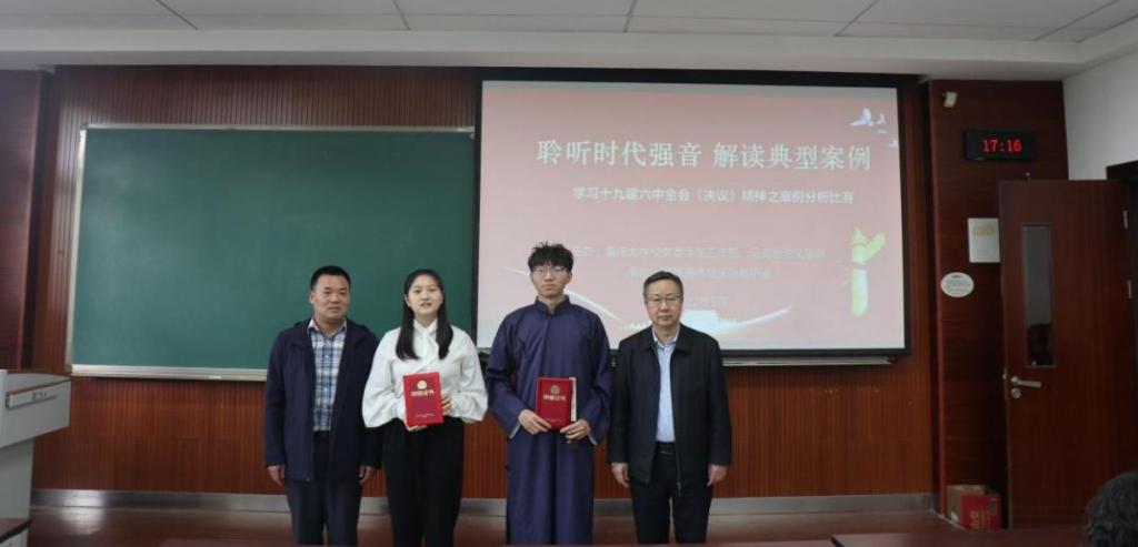 经过三个多小时的激烈角逐,最终28支参赛团队中有4个获得一等奖,8个获得二等奖,16个获得三等奖。其中,获得一等奖的参赛主题为《玄武基地——天上有宫阙》《守住公正天平,捍卫法治理想》《众志“成”城,坚定步渝》《彪炳史册的伟大奇迹之脱贫攻坚》,董雪儿同学和王臬同学斩获最佳个人表现奖。