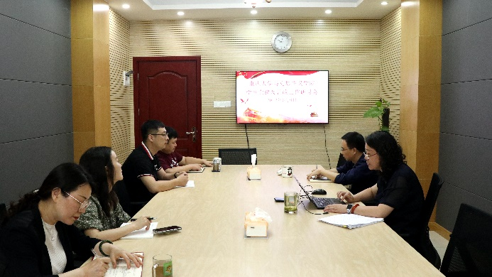 在439会议室召开关于学生党建及思政工作研讨会,学院党委书记罗滌、副书记温健琳,组织员王玉琴,辅导员张丹,党委秘书张守新参加会议。