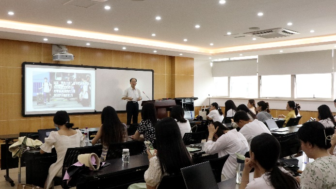 肖铁岩从新时代具有什么样的新特征入题,他讲到,新时代是网络时代,网络与我们每个人都息息相关,在新时代实现新发展一定要抓住网络这一关键点;接下来,肖铁岩通过一系列的故事带领毕业生党员回顾了建国七十余年来的昨日今朝。一是通过五十年前的开学行囊和如今新生报到的行囊做对比,从行囊看时代变化,新一代学子呈现出的诸多新特征中个性化是这一代青年学子的最主要特征;二是通过图片、视频等形式向同学们展示了天天看小说
