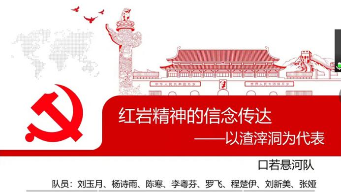 随后,第一组的李晶晶同学以“以青春颂歌浩然红岩之光”为主题讲述了红岩烈士刘国鋕的故事,通过视频、图片和文字带领大家回顾了革命英烈刘国鋕的一生,并发出了以理想之光照亮奋斗之路,以信仰之力开创美好未来的号召。