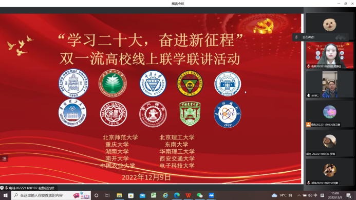 等10所高校联合举办,会议通过“腾讯会议”线上开展,电子科技大学硕士研究生程静宜主持,来自全国各高校140余名师生参会。我院红岩宣讲团成员董瑞祺作了题为《贯彻绿色理念 共建美丽中国》的主题宣讲。
