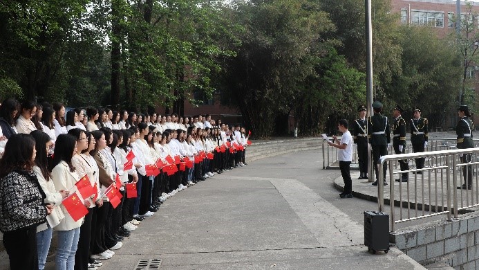 全体学生在A区思群广场参加升旗仪式,开展“国旗荣誉在心 国家安全上心”主题活动。