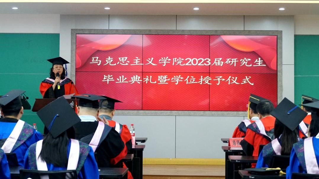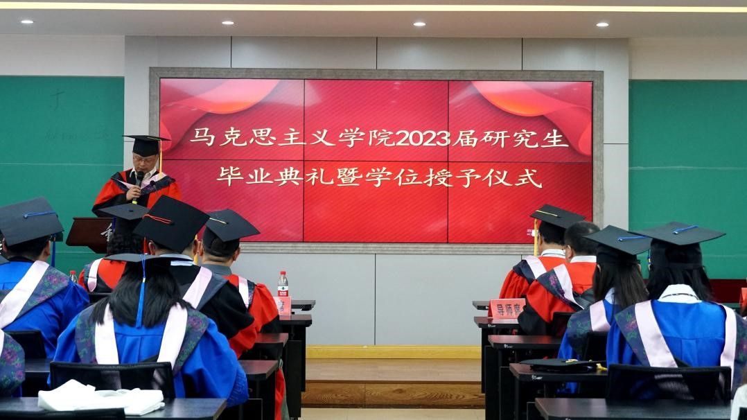 的发展历程以及近年来取得的成绩。他鼓励毕业生们在未来的征途要做到“守正创新”,谨记自己是马克思主义理论的研究生,提升自己的综合素质,在工作岗位上发挥自己的专业特长,牢记“马院姓马,在马言马,建设祖国,一马当先”。最后,他祝福2023届毕业生们前途似锦,以饱满的干事热情、昂扬的奋斗姿态,开启人生新征程,谱写人生新篇章!