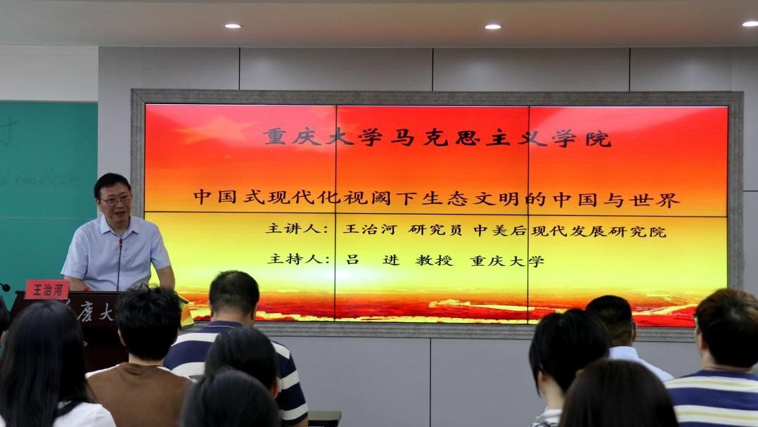 特邀中美后现代发展研究院常务副院长王治河研究员为我院师生作了题为“中国式现代化视域下生态文明的中国与世界”的专题讲座。讲座由学院副院长吕进主持,全院100余名学生积极参加。