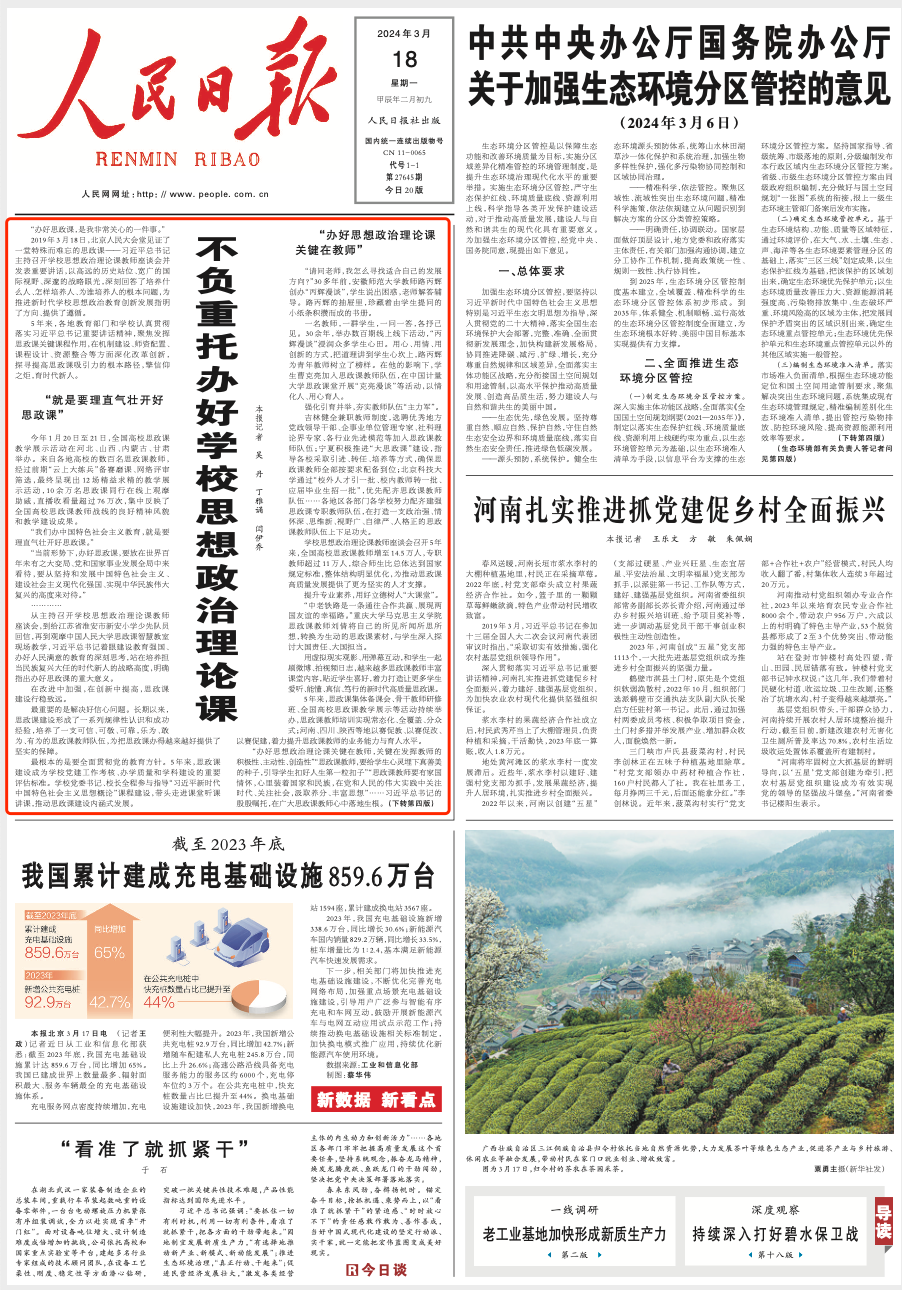 2024年3月18日,《人民日报》头版头条推出《不负重托办好学校思想政治理论课》报道,点赞天天看小说
