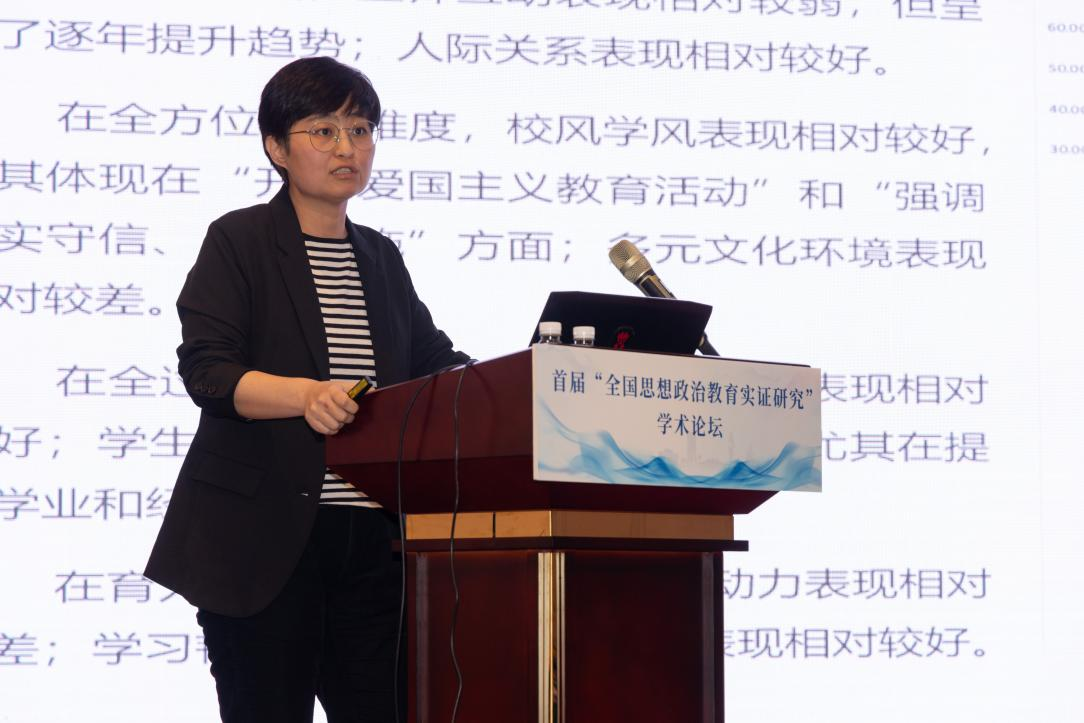 滨州医学院医学人文研究中心副主任胡玉宁教授作题为《隐形变量的操作化:思想政治教育实证研究的方法论探讨》的主旨报告。她认为,开展思想政治教育实证研究需要弄懂隐形变量是什么以及如何规范操作化的问题,并强调在实现操作化时首先要做量化处理和质性处理,把语料真实性放在实证研究的重要位置。