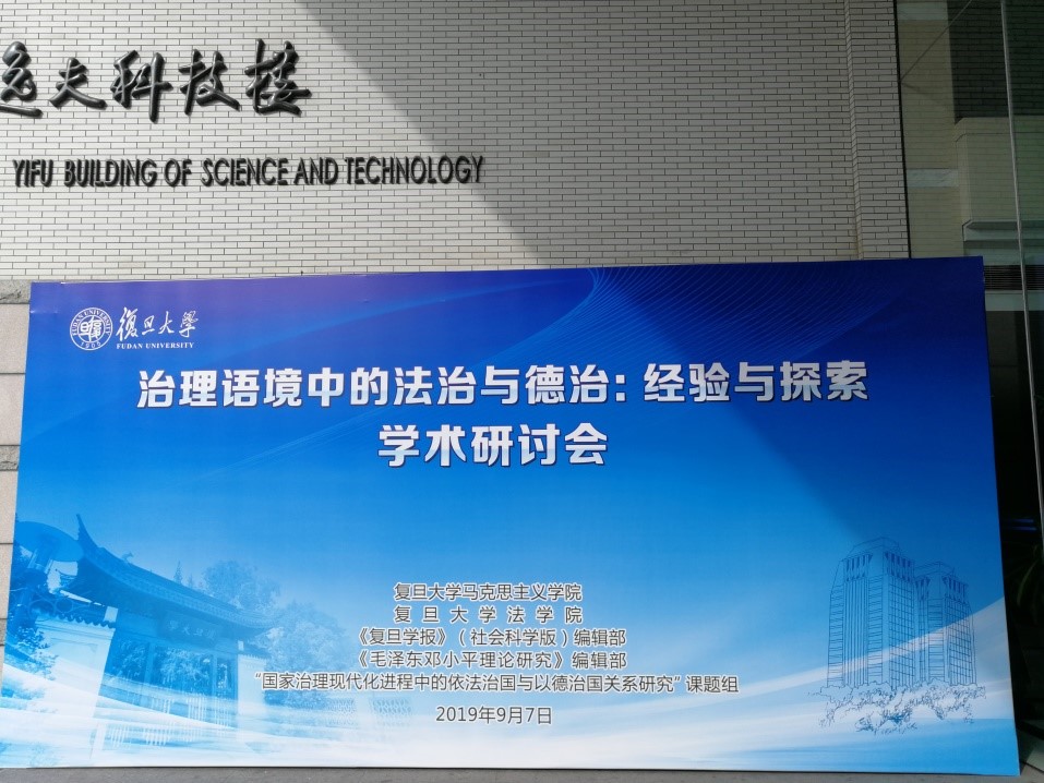 、复旦大学法学院、《复旦学报》(社会科学版)编辑部、《毛泽东邓小平理论研究》编辑部、以及国家哲学社会科学重大项目“国家治理现代化进程中的依法治国与以德治国关系研究”课题组共同举办了“治理语境中的法治与德治:经验与探索”学术研讨会,我院庞永红教授应邀参会并做了题为“中华人民共和国成立70年中国法伦理学”的大会发言。