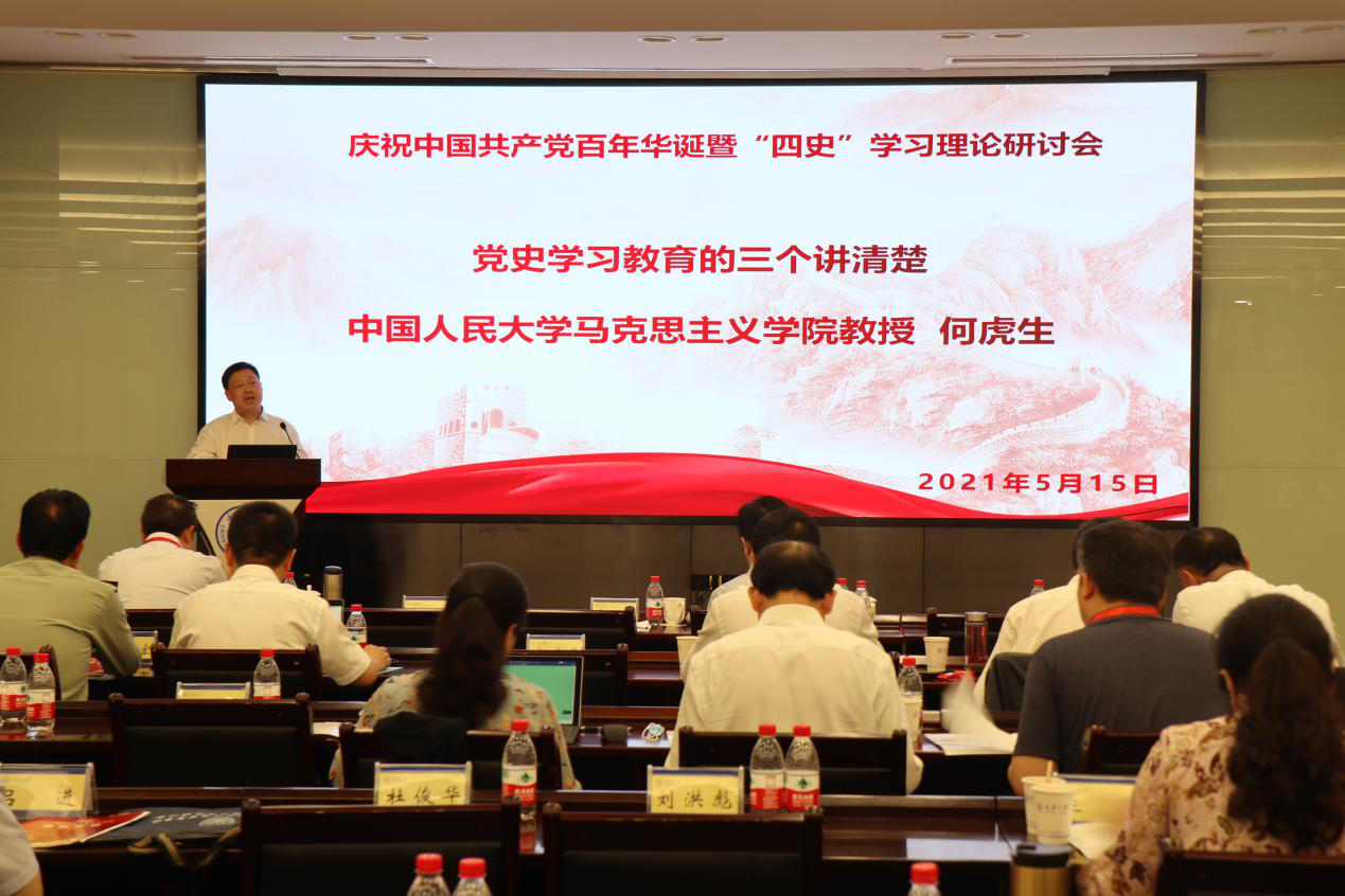 教授王洪树、国防大学政治学院教授邱圣宏依次进行交流。其中何虎生教授讲清楚习近平总书记关于党史学习教育的重要论述、讲清楚党史学习教育的主要方面、讲清楚党史学习教育的主要方法三部分进行了重点阐述。