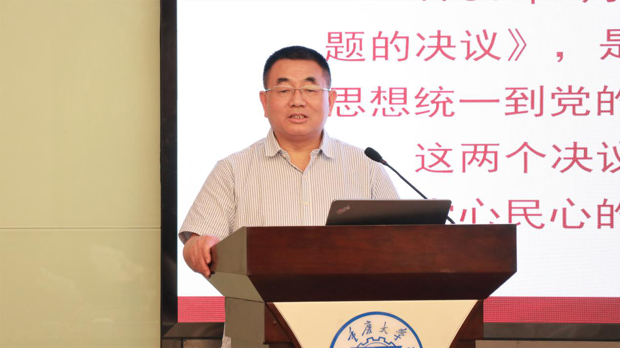 副教授卢旭东依次进行发言。其中卢旭东副教授从根植自我革命的自觉性、肩负继往开来的使命性、厚植执政为民的人民性、树立正确党史观的导向性四个方面阐述了习近平总书记关于党史学习教育重要论述的逻辑理路。